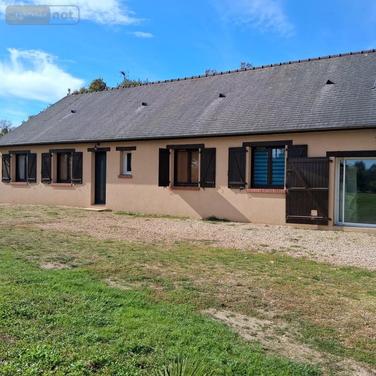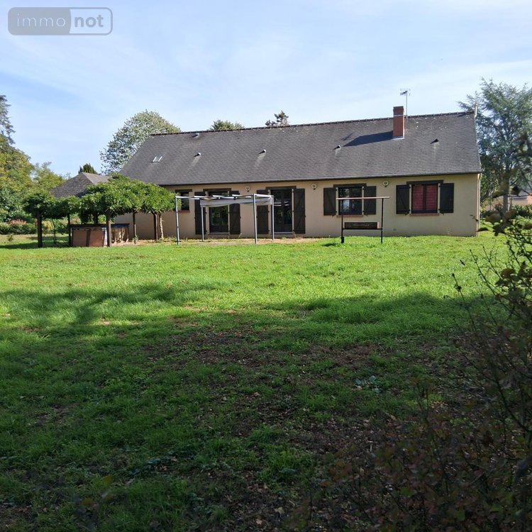 A VENDRE à MORANNES SUR SARTHE (49640), En bordure de la Sarthe, une maison d'habitation édifiée en 1980 de 123 m² de plain-pied, comprenant entrée, cuisine aménagée et équipée ouverte sur la pièce de vie (46 m²), quatre chambre, salle de bains, bureau, salle d'eau à rénover. Chaufferie, cave. Chauffage par pompe à chaleur. Assainissement individuel. Dépendance de 78 m², préau et garage. Terrain de 1ha 41a. La maison n'a pas subi d'inondation cet hiver. Etat des risques disponible sur : www.georisques.gouv.fr