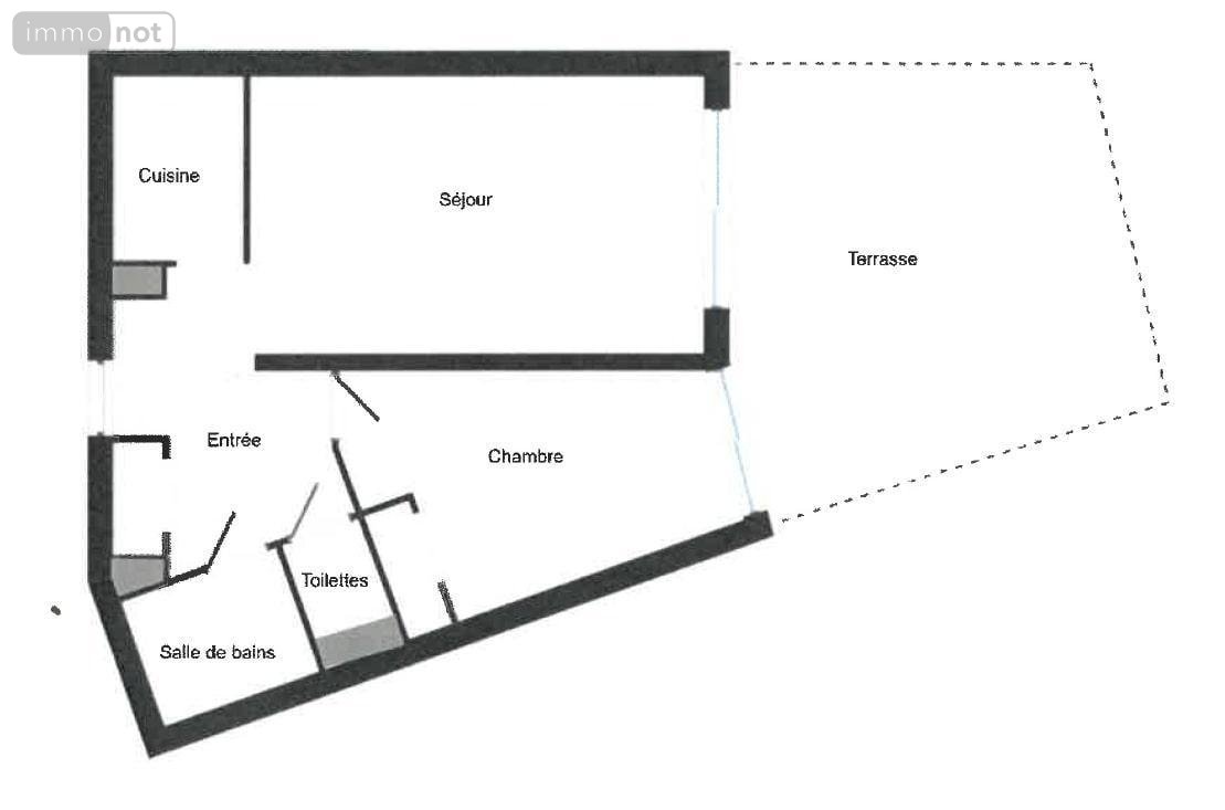L'appartement se compose d'une entrée, d'un séjour lumineux, d'une cuisine équipée, d'une chambre, d'une salle de bains, ainsi que de WC indépendants.
