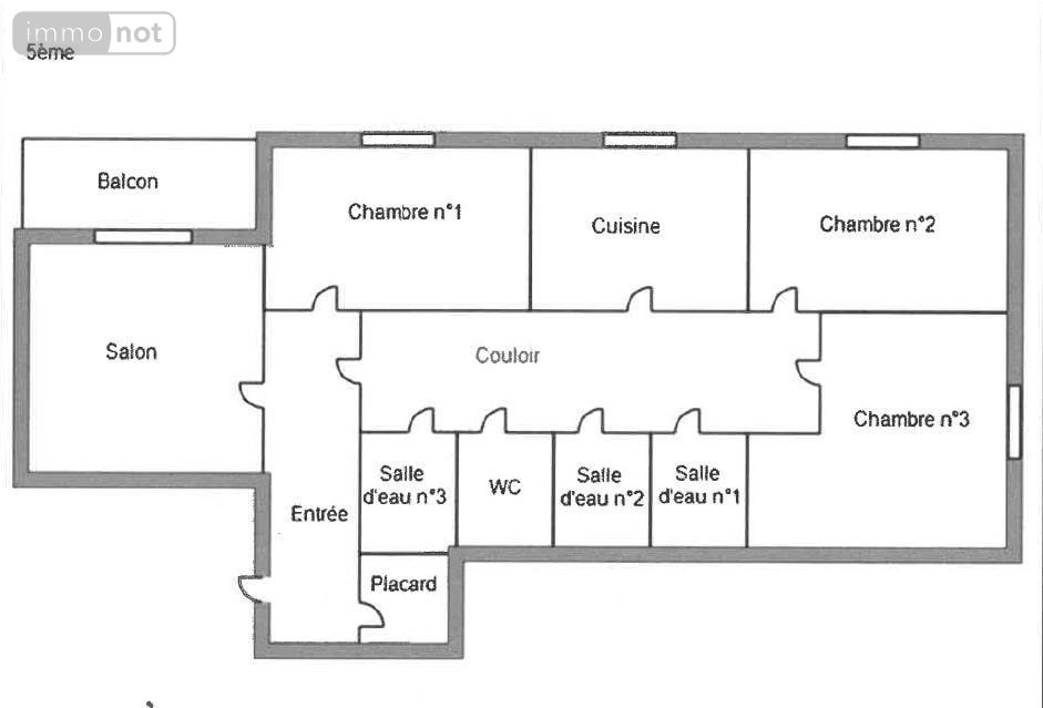Le bien se compose d'une entrée, d'un salon lumineux donnant accès au balcon, d'une cuisine aménagée, d'un couloir, ainsi que de trois chambres (10,84 m² - 11,83 m² - 13,32 m²), chacune disposant d'une salle d'eau privative. Un WC séparé complète l'ensemble.