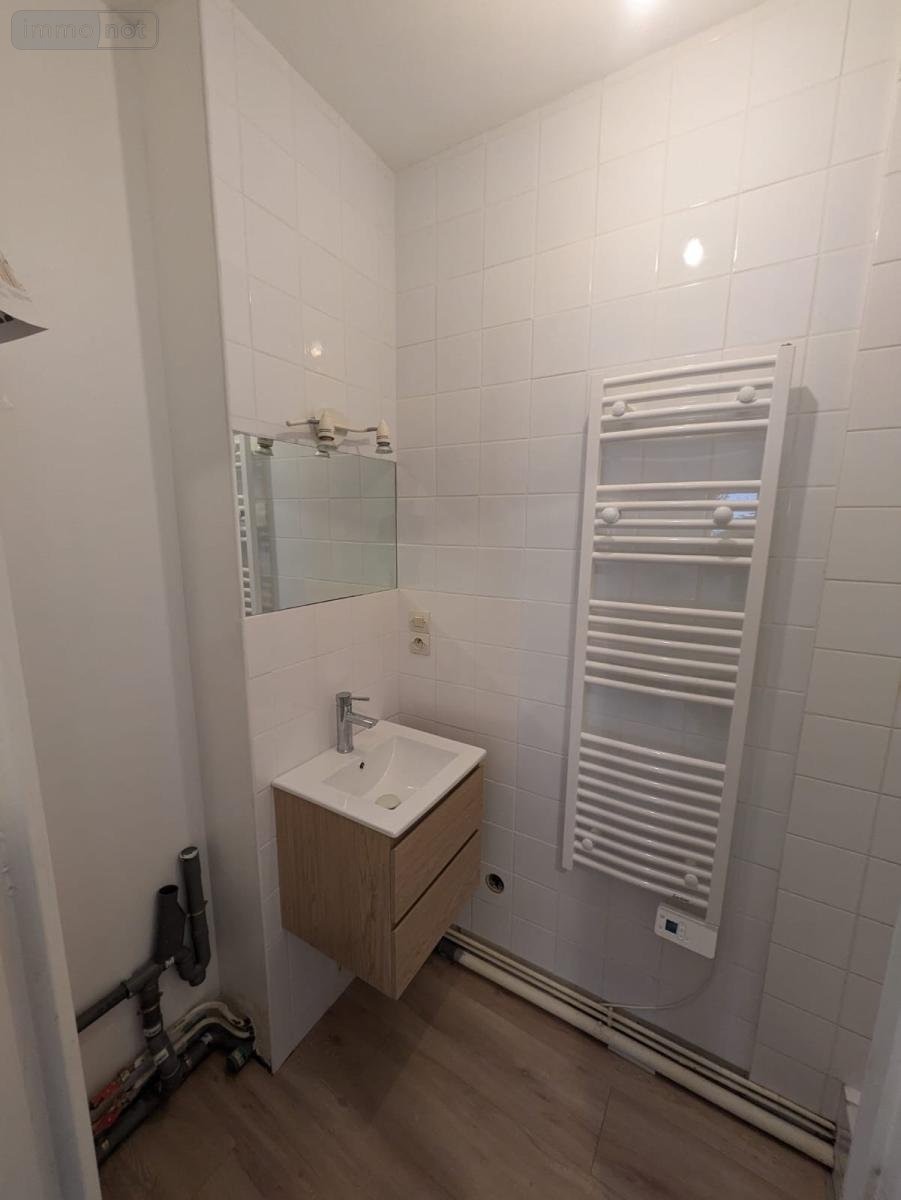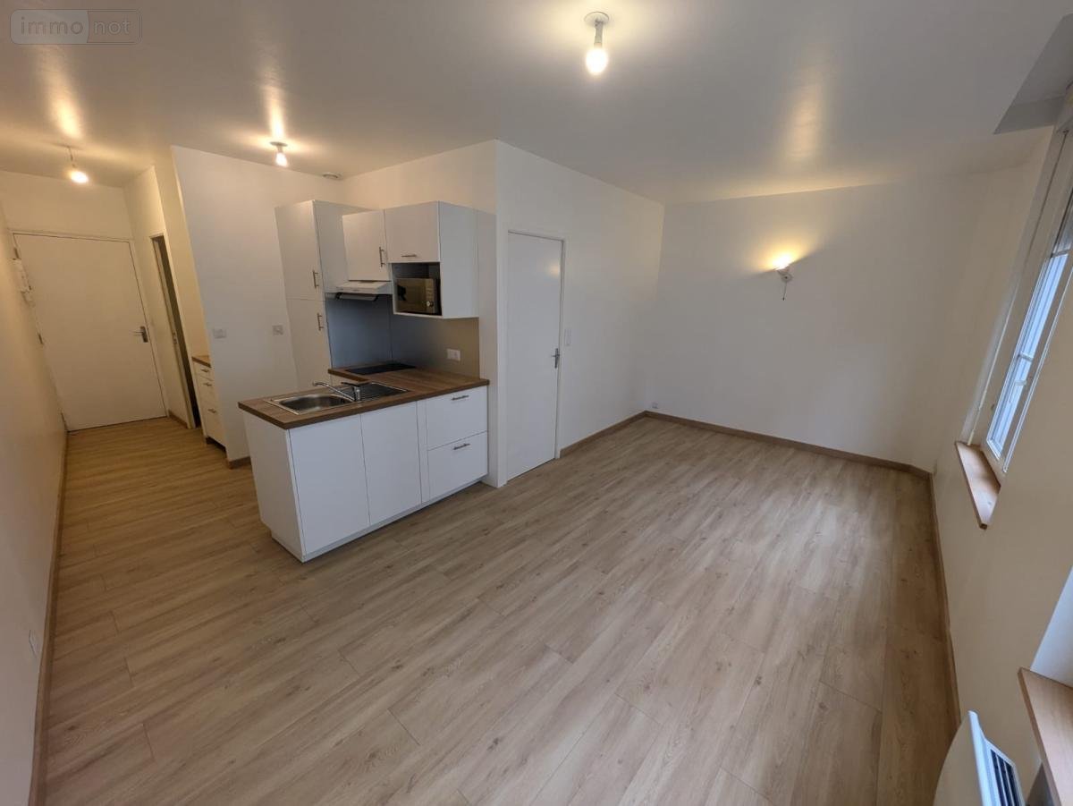 Une entrée, séjour ouvert sur cuisine aménagée-équipée, une chambre avec placard, une salle d'eau, WC.