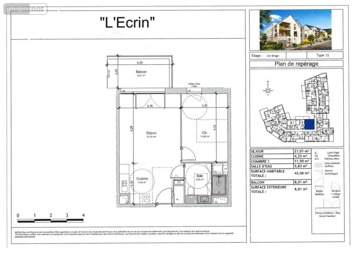 Location d'un appartement T2 neuf situé au 1er étage, comprenant :