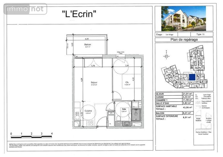 L'appartement dispose également d'un balcon et d'une place de parking en sous-sol.