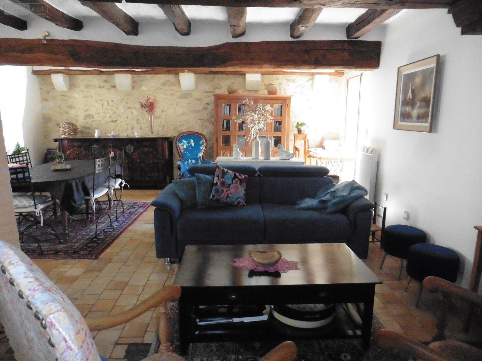 Un gîte comprenant au rez-de-chaussée : Un séjour-salon avec une cheminée et four à pain, une cuisine ouverte aménagée et équipée, un wc.