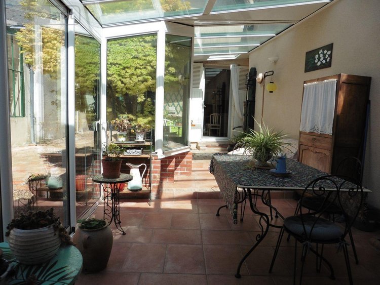 Maison principale comprenant au rez-de-chaussée :Un séjour-salon avec une cheminée insert, une cuisine aménagée et équipée, , une véranda, un wc, une salle de jeux avec un poêle à bois.
