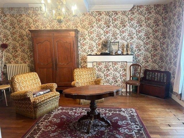Ravissante et spacieuse maison ancienne comprenant au rez-de-chaussée : Un hall d'entrée, un séjour-salon parqueté avec deux cheminées, une cuisine avec une cheminée insert, une chambre, un wc, un dégagement.