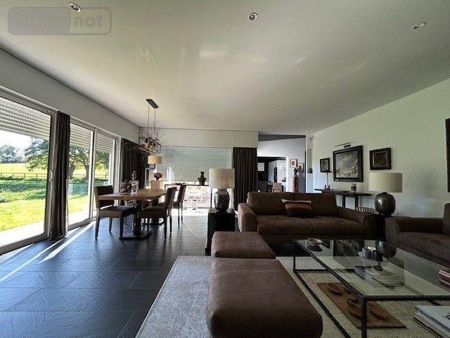 Maison comprenant au rez-de-chaussée : Une entrée, une vaste pièce de réception avec une cheminée, une cuisine aménagée et équipée, une arrière cuisine, un bureau, trois chambres, une salle de douche, un wc, un couloir, un double garage.