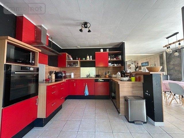 Agréable maison comprenant au rez-de-chaussée : Une entrée, un séjour-salon avec un poêle à granule, une cuisine ouverte aménagée et équipée, une lingerie, trois chambres, un bureau, une salle de douche, un wc, un couloir, un garage avec un grenier au-dessus.