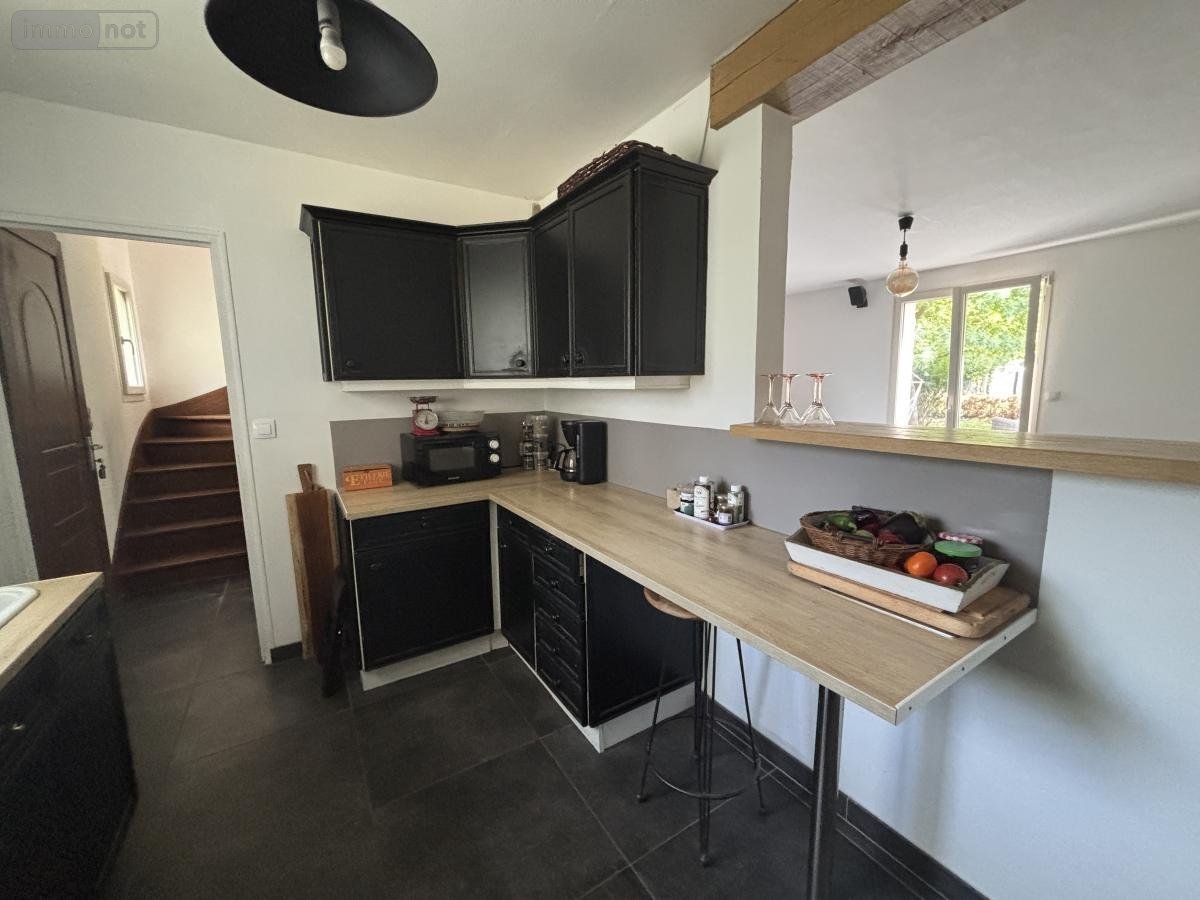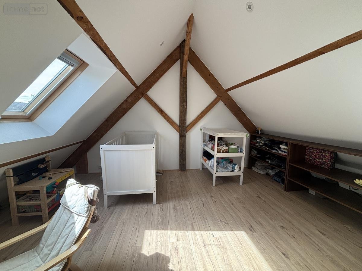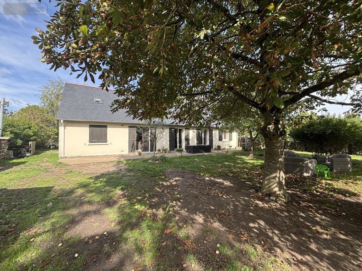 BEAUFORT EN ANJOU (49250), Gée, maison construite en 1978 non mitoyenne d'environ 119 m² habitables comprenant au rez de chaussée : entrée, cuisine, salon/séjour, deux chambres, salle d'eau avec douche italienne. Au premier étage : mezzanine, deux chambres et un bureau. Grand garage avec grenier au dessus. Terrain d'environ 1349 m² avec puits.