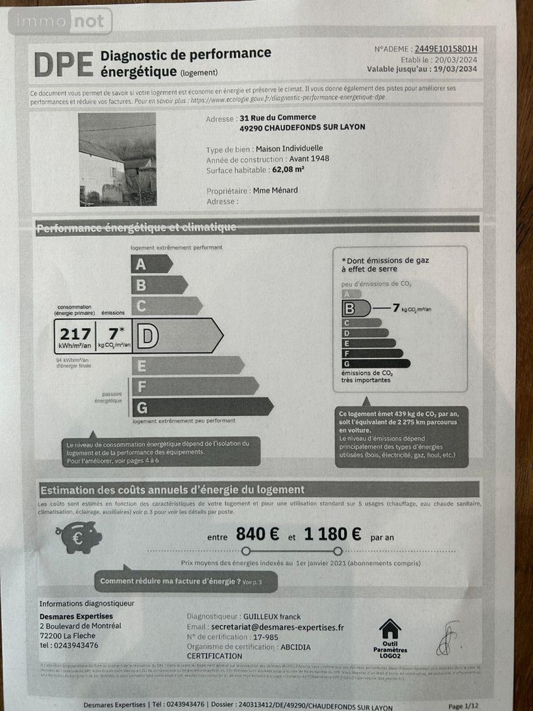 Estimation annuelle des coûts d'énergie du logement