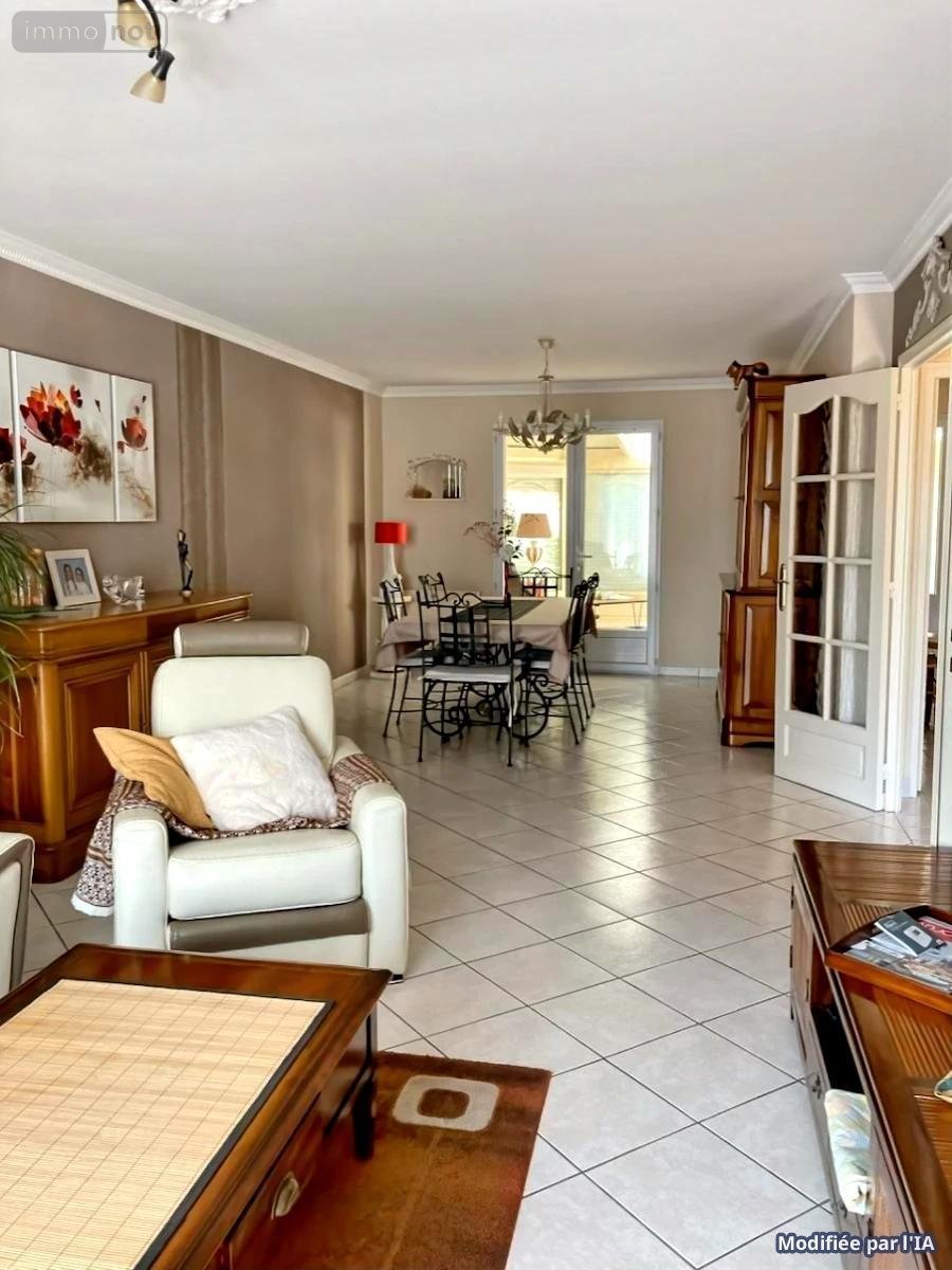 Espace Vie : Salon-séjour spacieux, cuisine aménagée et magnifique véranda climatisée de 30 m² avec volets électriques.