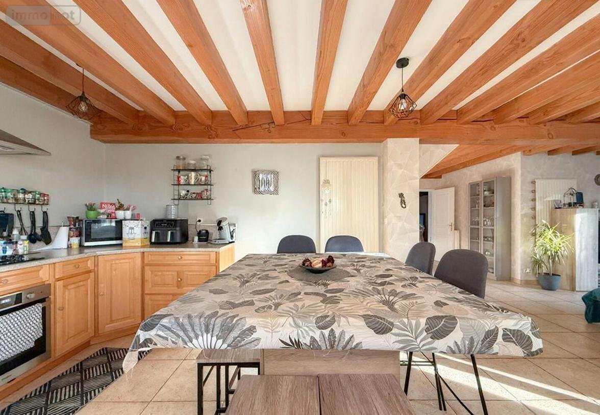 - au rdc : entrée, wc, séjour-salon avec poêle à bois, cuisine ouverte aménagée-équipée, chambre avec salle de bains privative