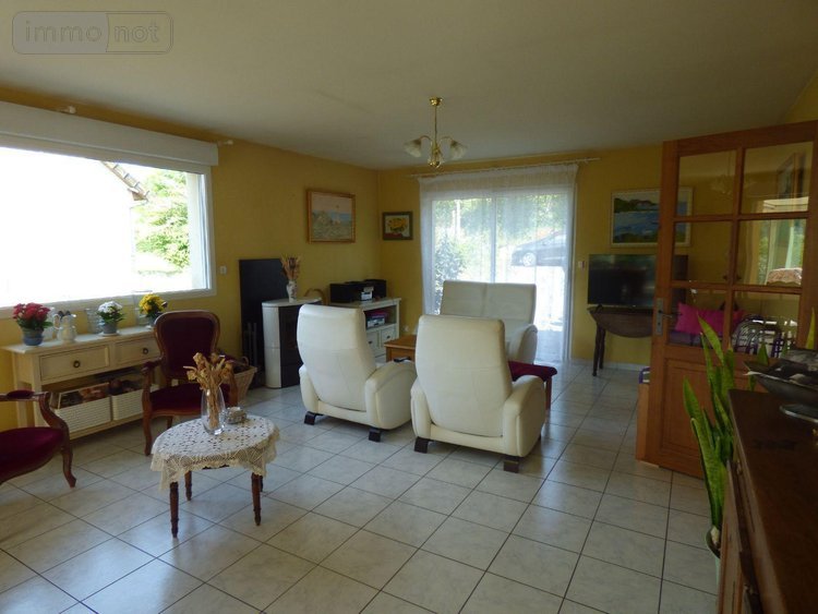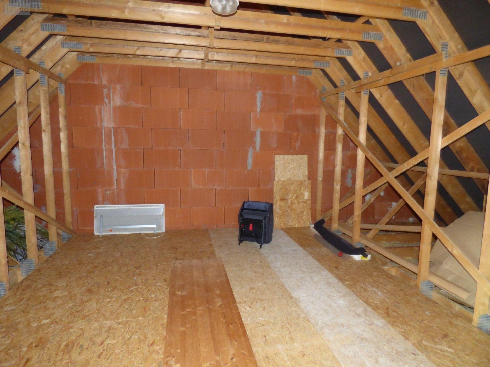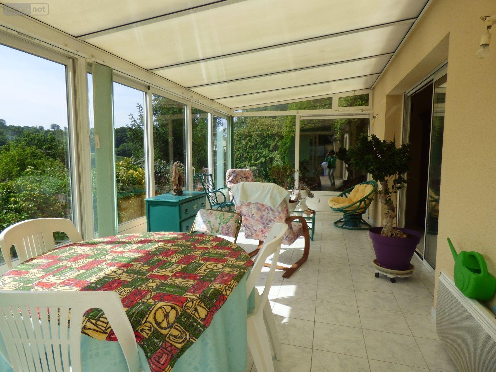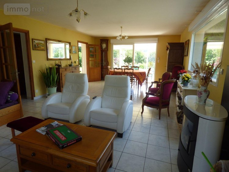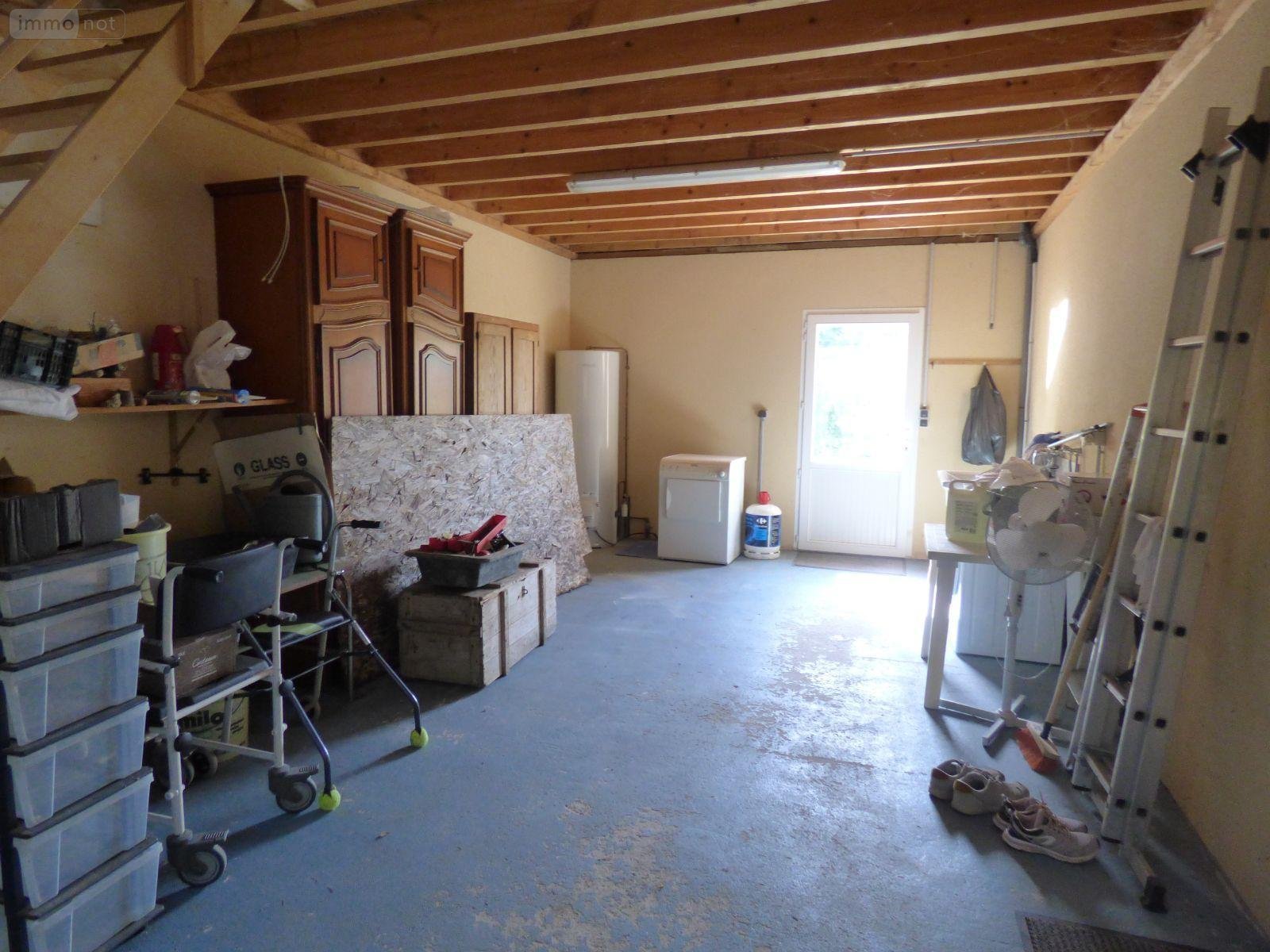 Au rez-de-chaussée : entrée, séjour-salon avec poêle à bois, cuisine, véranda, une chambre, WC, salle d'eau, garage