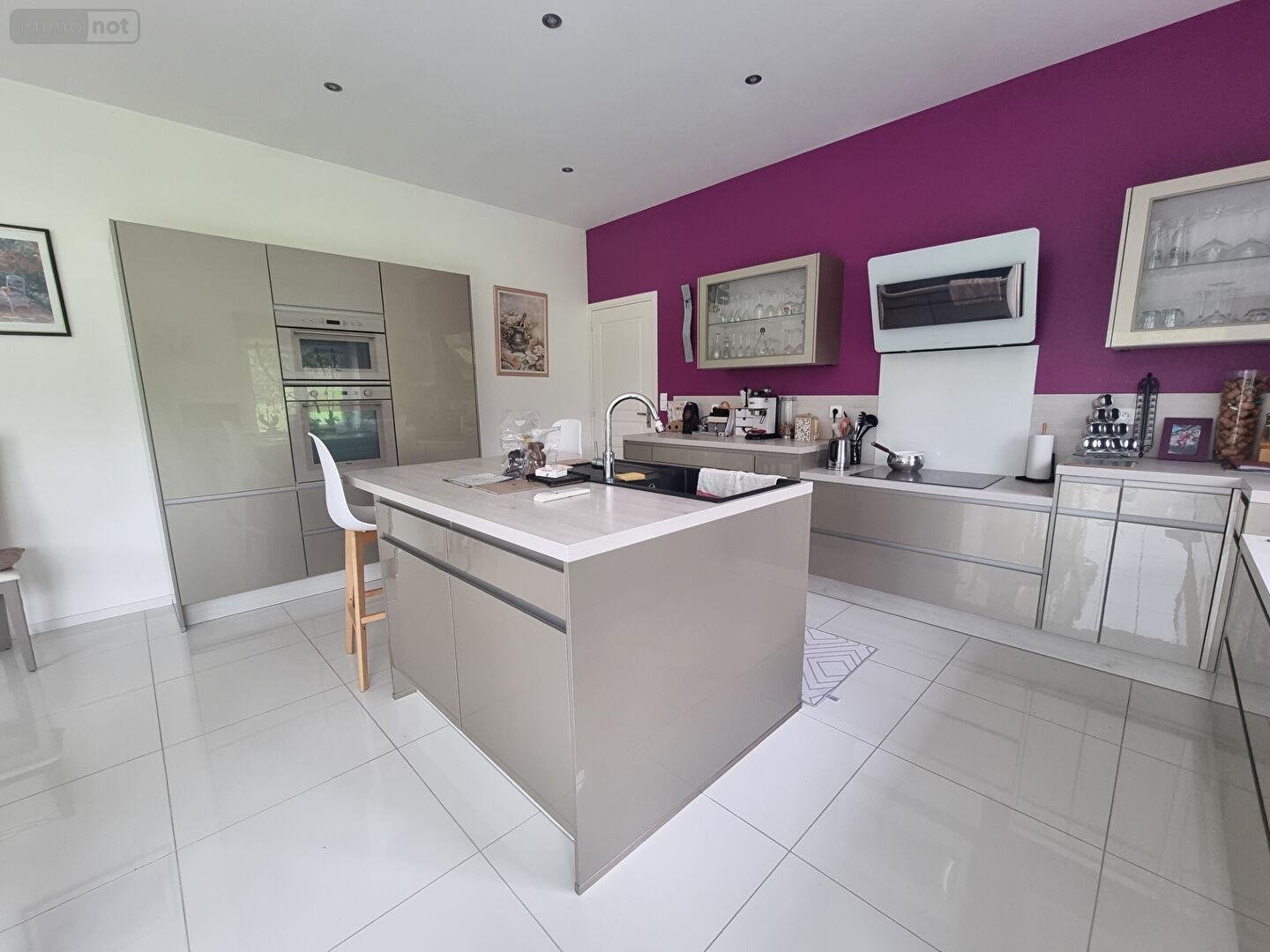 Rez-de-chaussée : une entrée, un bureau, un séjour salon chaleureux avec poêle à bois, une cuisine aménagée et équipée avec coin repas, une arrière-cuisine, une chambre avec salle de bains wc, dressing, un wc séparé
