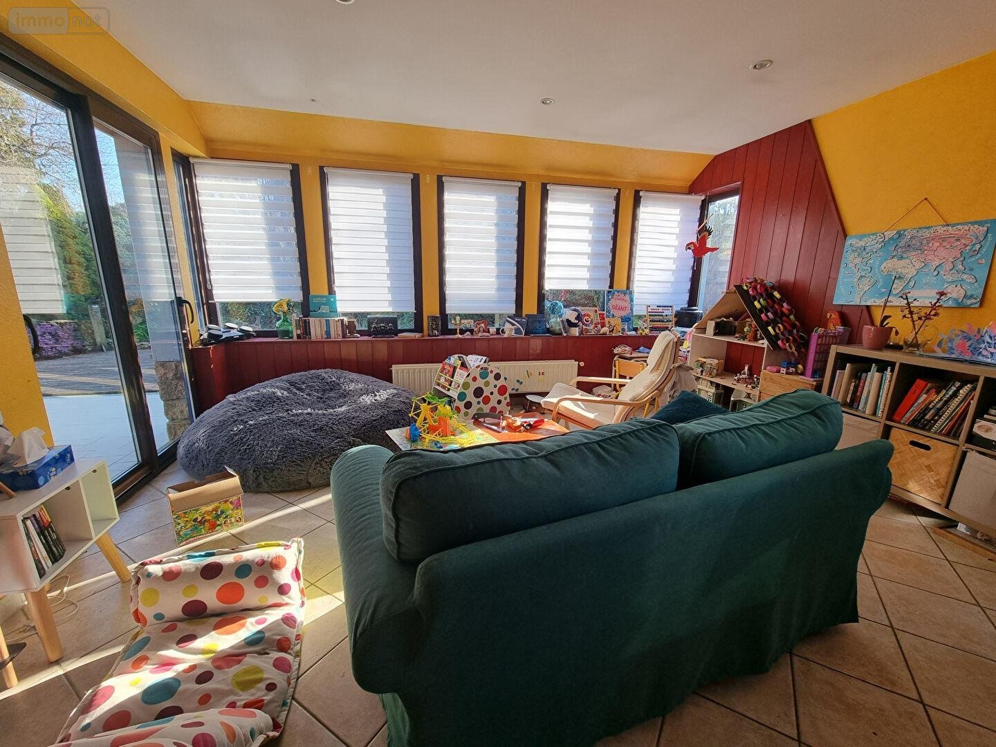 La maison comprend au rez-de-chaussée un vaste séjour ensoleillé disposant d'un coin bureau, un salon avec poêle à bois, une cuisine aménagée et entièrement équipée, un WC et un dégagement.