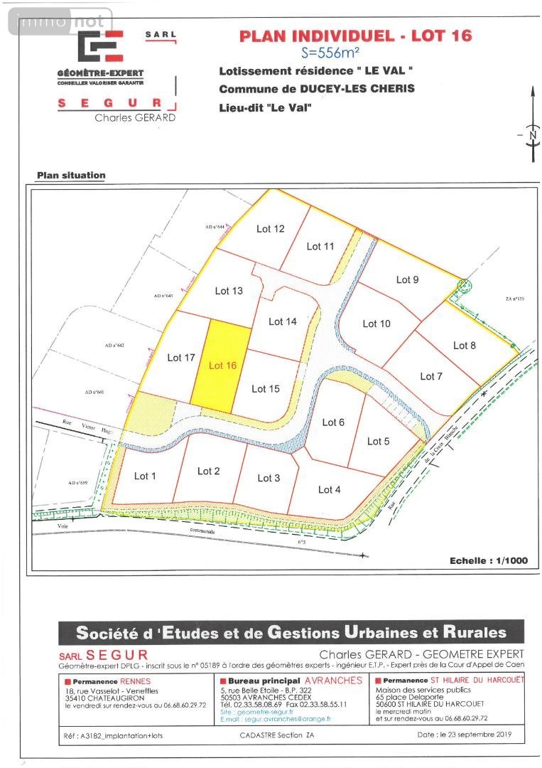DUCEY LES CHERIS Idéalement situé, à proximité immédiate des commerces et des écoles, ce terrain bénéficie d'un environnement calme et d'une exposition plein sud.
