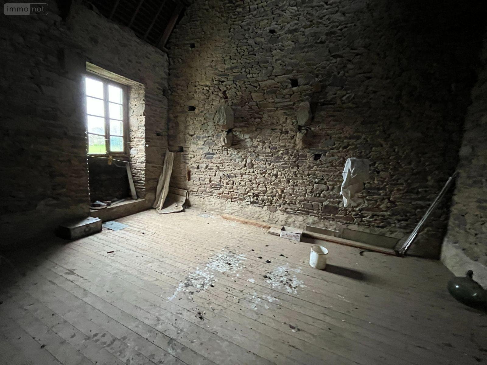 Maison en pierre à restaurer, composée d'une entrée, pièce de vie avec cuisine, cellier, dégagement, salle d'eau avec wc, une chambre et arrière-cuisine.