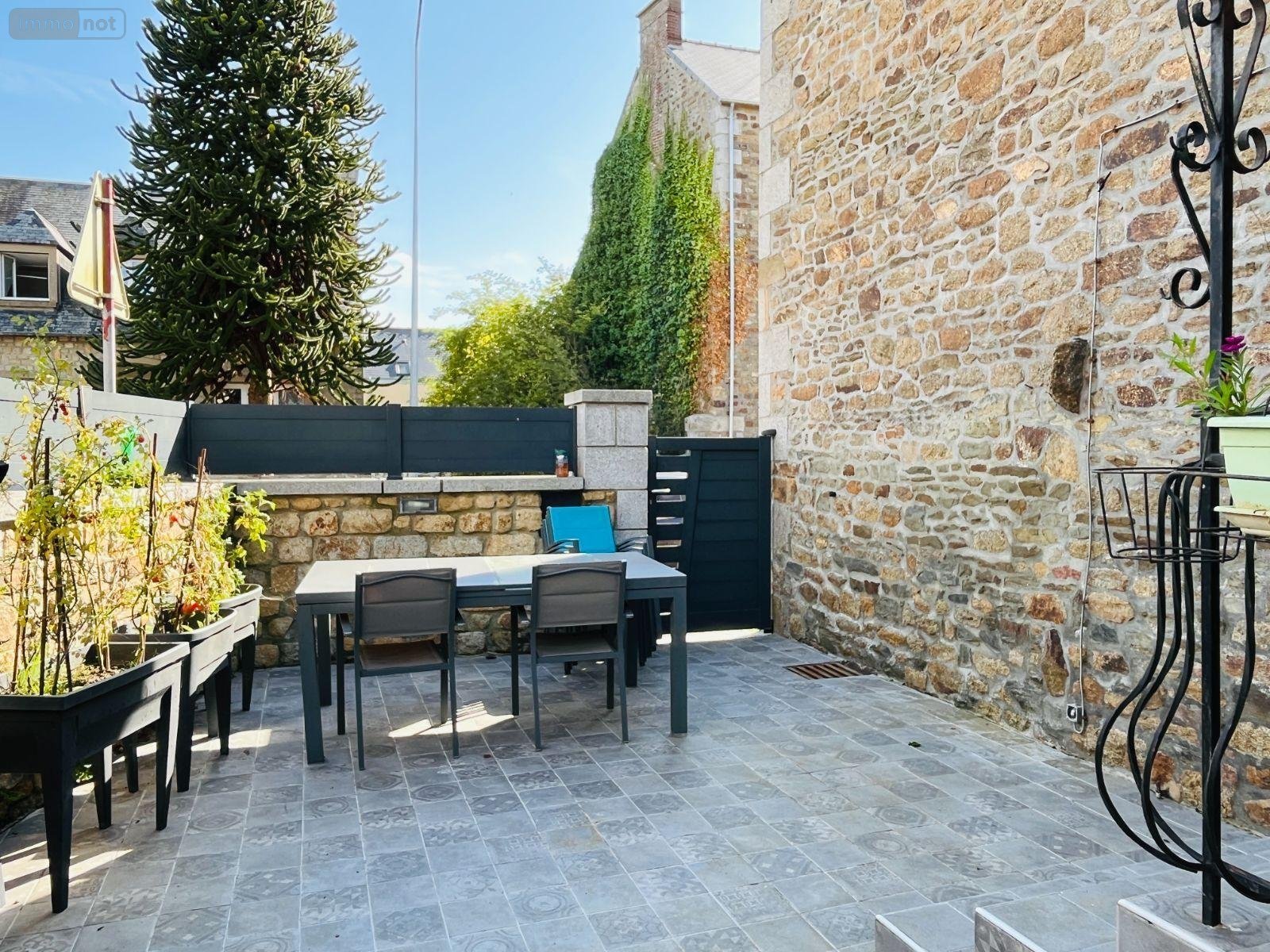 A vendre dans le bourg de Pontaubault, une maison d'habitation mitoyenne d'un côté construite en pierres sous ardoises d'environ 100 m² habitables, comprenant : - au rez-de-chaussée : cuisine aménagée et équipée ouverte sur séjour, salon avec insert à bois, wc ; - à l'étage : palier desservant trois chambres dont une avec douche privative, salle de bains et wc ; Cave en sous-sol. Courette clos de mûrs.