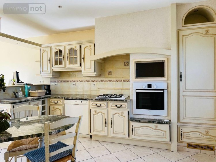 - au rez-de-chaussée surélevé : entrée, cuisine aménagée et équipée, séjour avec accès balcon, salon avec insert, trois chambres, salle d'eau et wc ;