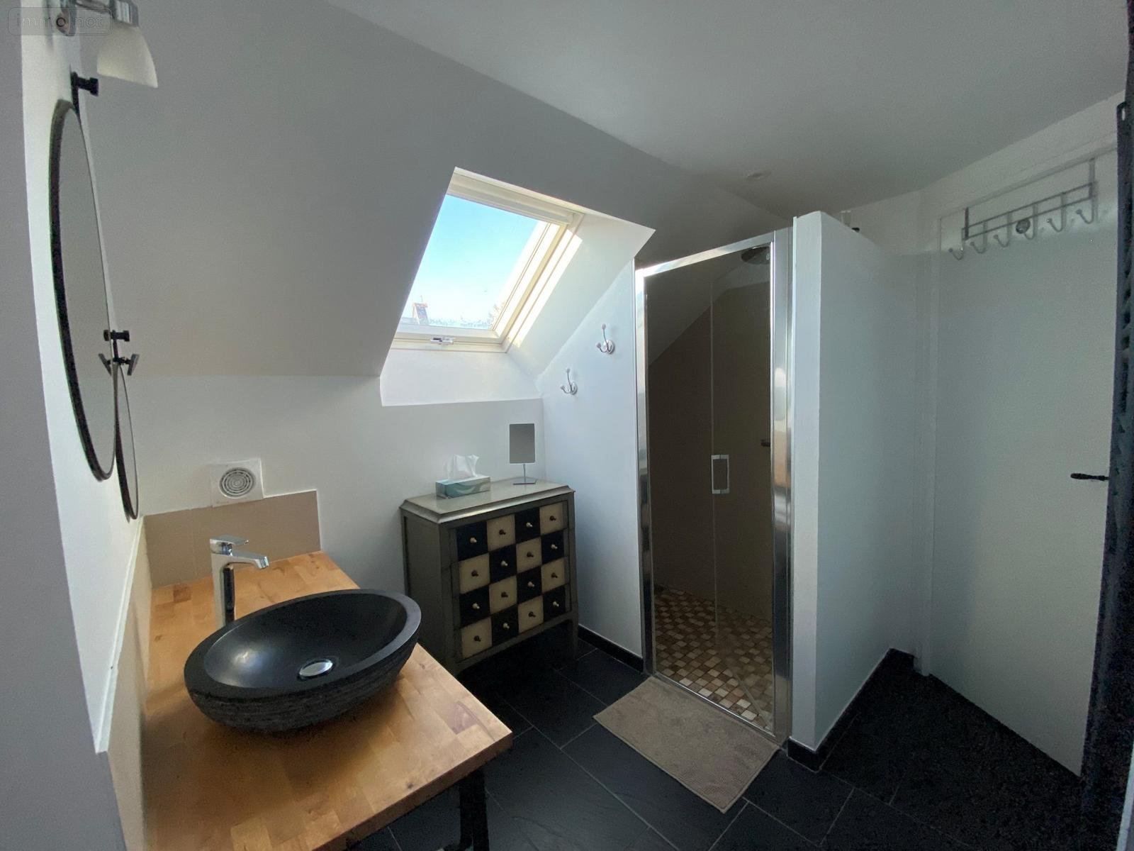 A l'étage, vous trouverez 2 chambres, une salle d'eau avec WC, et un accès à une terrasse surélevé à l'abri des regards.