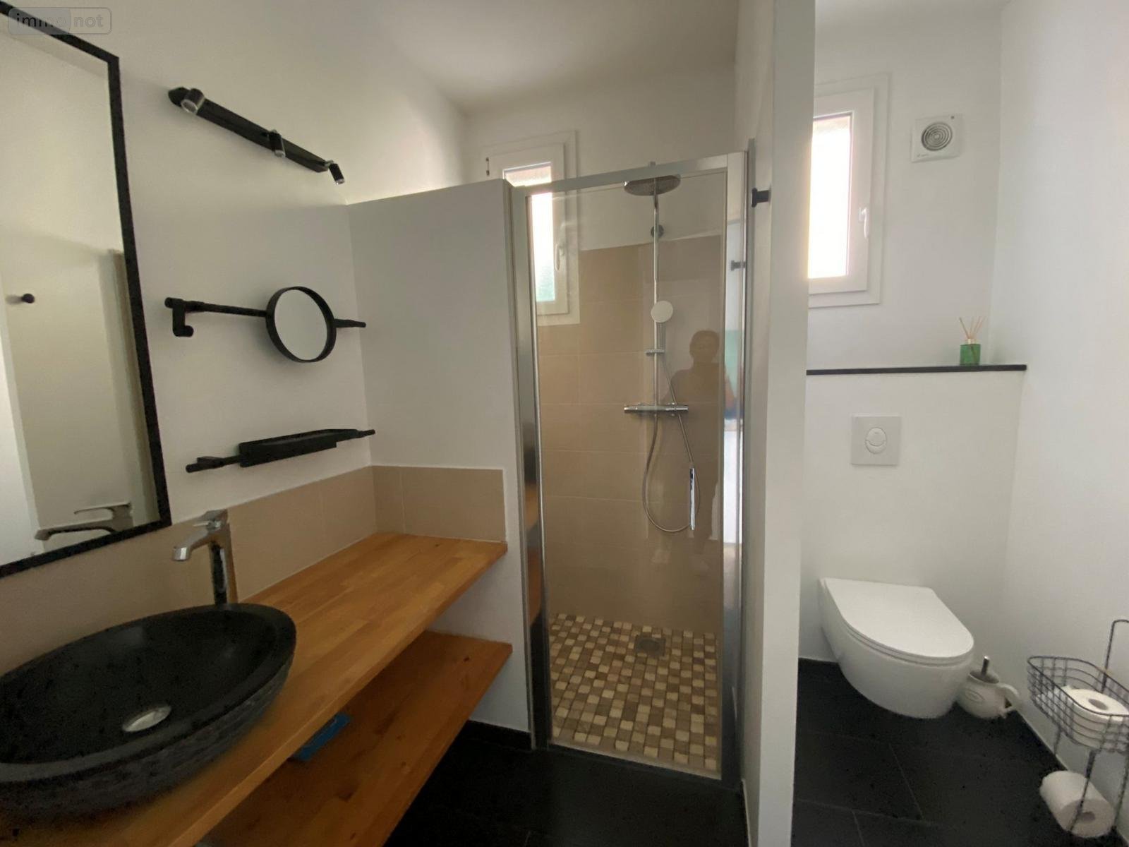 Vous serez séduit par cette jolie maison en pierre entièrement rénovée en 2019 comprenant au rez-de-chaussée une pièce de vie avec sa cuisine ouverte équipée et aménagée, un salon, une salle d'eau avec un toilette, une buanderie, une lingerie, une pièce de rangements et une chambre avec une terrasse ( elle a un accès indépendant donc possibilité de faire une chambre d'hôtes).