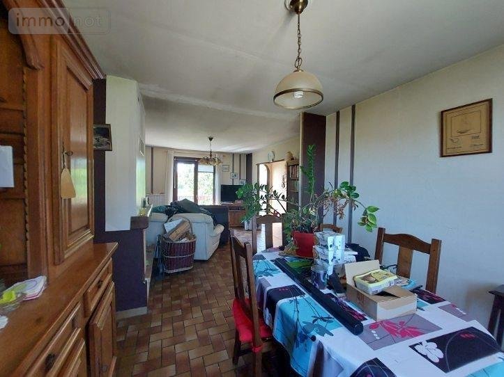 Maison à vendre sur sous sol surélevée, comprenant une entrée desservant une pièce de vie avec un insert, une cuisine indépendante équipée et aménagée, trois chambres, une salle d'eau et un wc séparé.