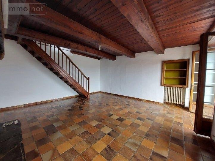 Maison mitoyenne en pierre, comprenant au rez de chaussée une pièce de vie avec une cheminée foyer ouvert, une cuisine aménagée et une pièce.