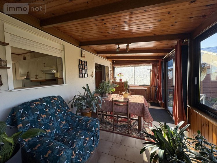 Maison composé d'une véranda, une pièce de vie, une cuisine, une salle d'eau avec un wc, une chambre.
