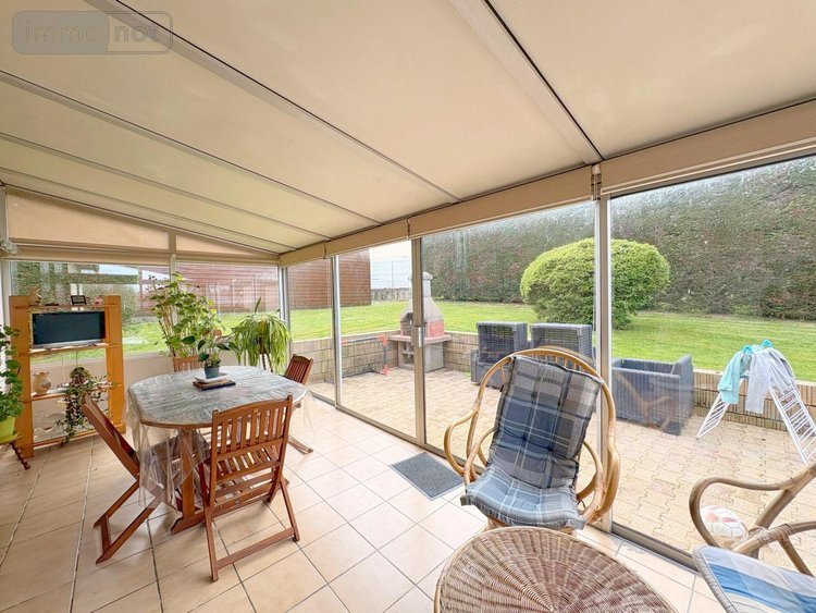 Elle se compose au rez-de-chaussée d'une entrée, d'un salon-séjour avec cheminée et poêle à granulés, d'une cuisine aménagée et équipée ouvrant sur une véranda, ainsi que d'un couloir desservant trois chambres, une salle d'eau et des WC.