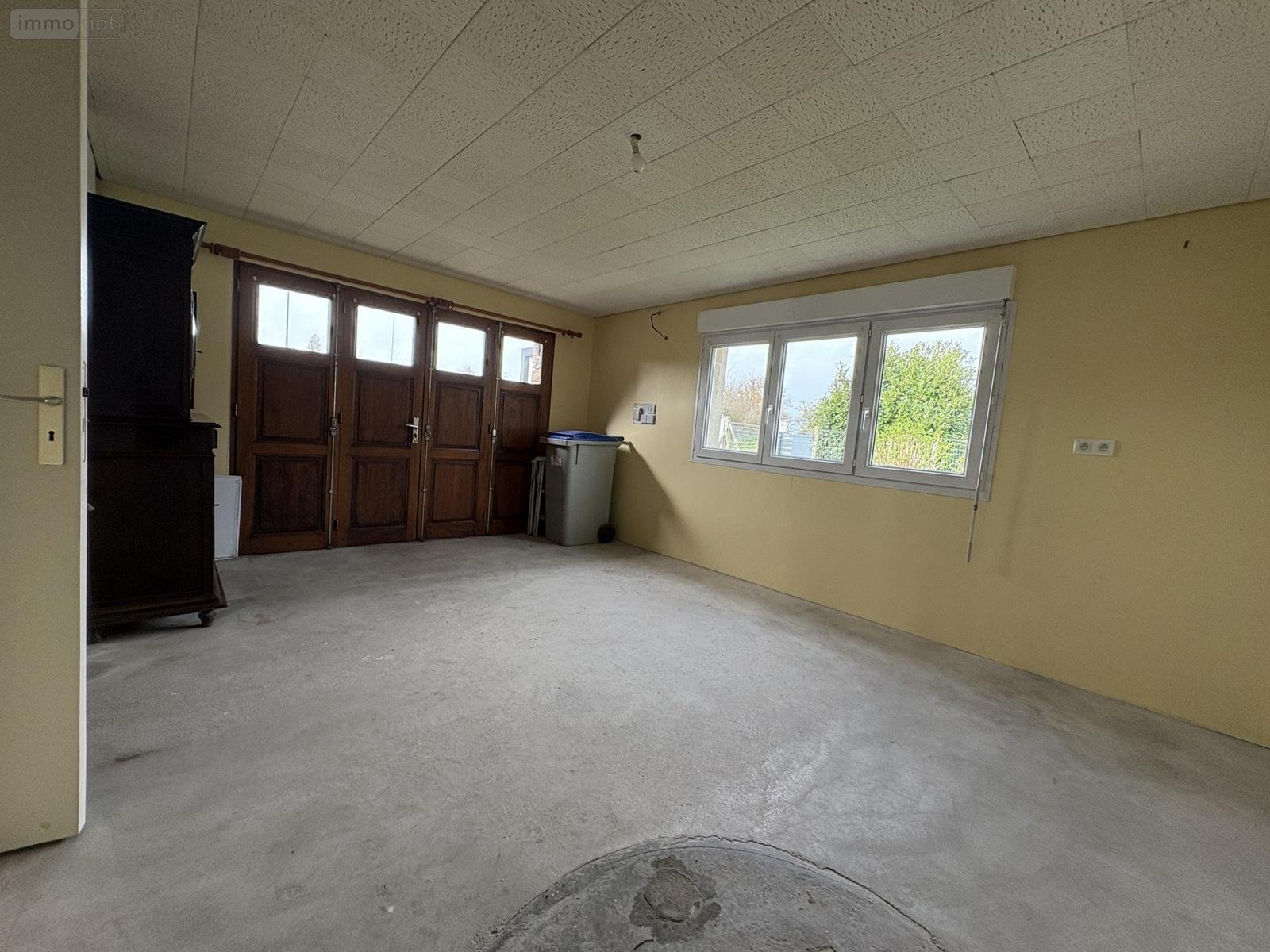 Maison avec de la pierre mitoyenne d'un coté, comprenant une entrée donnant sur une cuisine équipée et aménagée, une pièce de vie avec un insert, un couloir desservant un wc avec un lavabo, une buanderie et un garage.