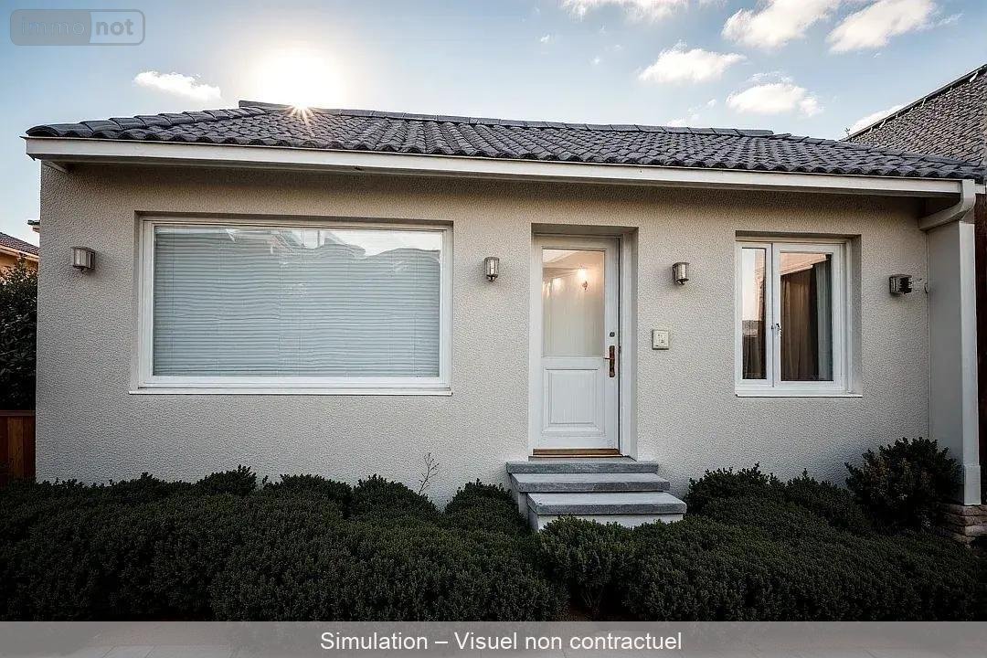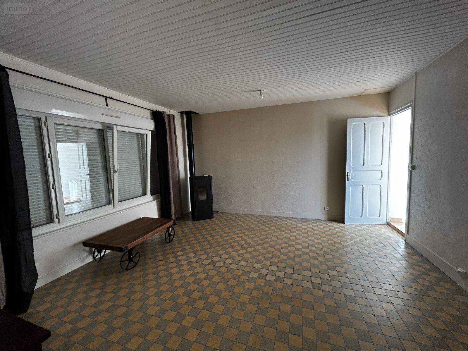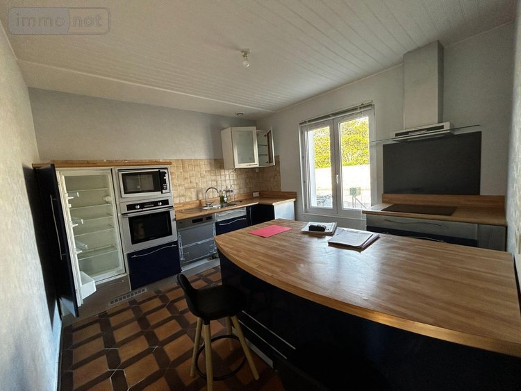 Maison de plain-pied comprenant une grande cuisine aménagée et équipée, un salon avec poêle à granulés, deux chambres, une salle d'eau et wc séparés.
