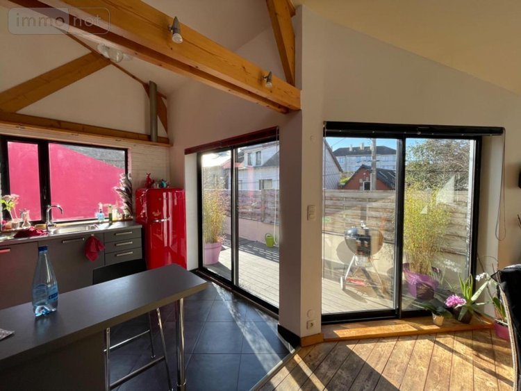 ETAGE : dégagement, jolie pièce de vie très lumineuse avec poêle à granulés (avec un espace mezzanine), cuisine ouverte sur séjour et donnant sur terrasse bien exposée, une chambre avec dressing, salle de bains (baignoire/vasque/douche), WC, pièce palière / bureau avec placard et coin rangement mezzanine, une chambre (sur terrasse).