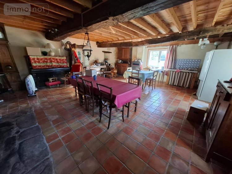 - au rez-de-chaussée : séjour avec cheminée foyer ouvert et poêle à bois, cellier, salle d'eau, toilette.