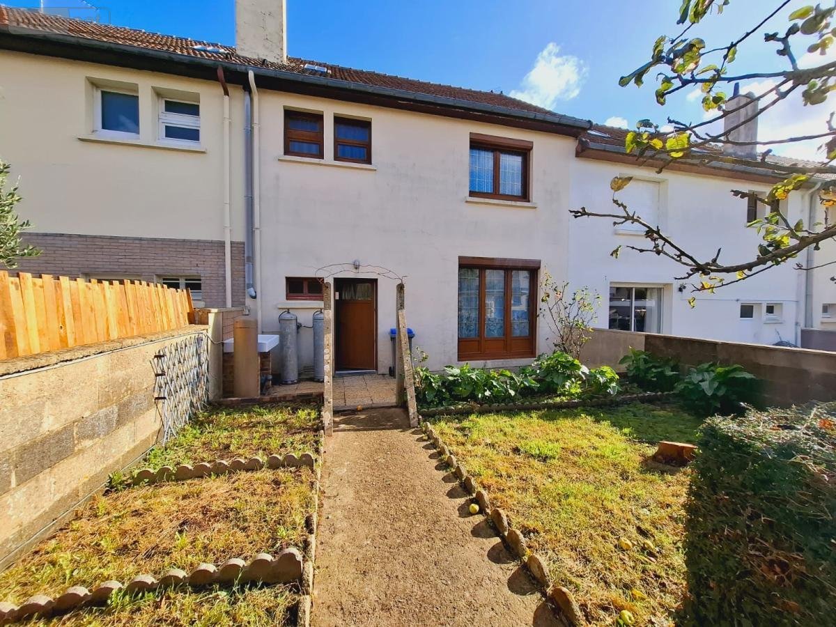 Cour sur l'avant avec stationnement et jardin exposé ouest avec cellier sur l'arrière.