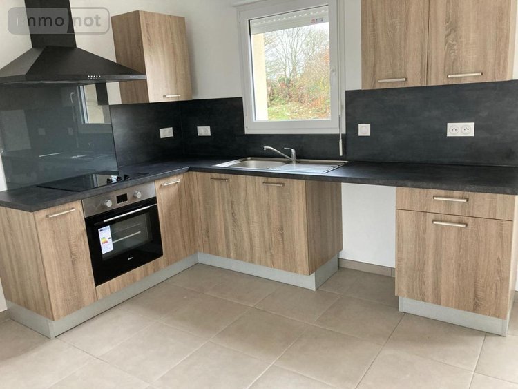 Entrée dans pièce de vie et cuisine aménagée ouverte (équipée de plaques/hotte/four), dégagement avec placard, 3 chambres, WC, salle d'eau (douche à l'italienne, meuble vasque, WC), buanderie. Terrain de 600 m².