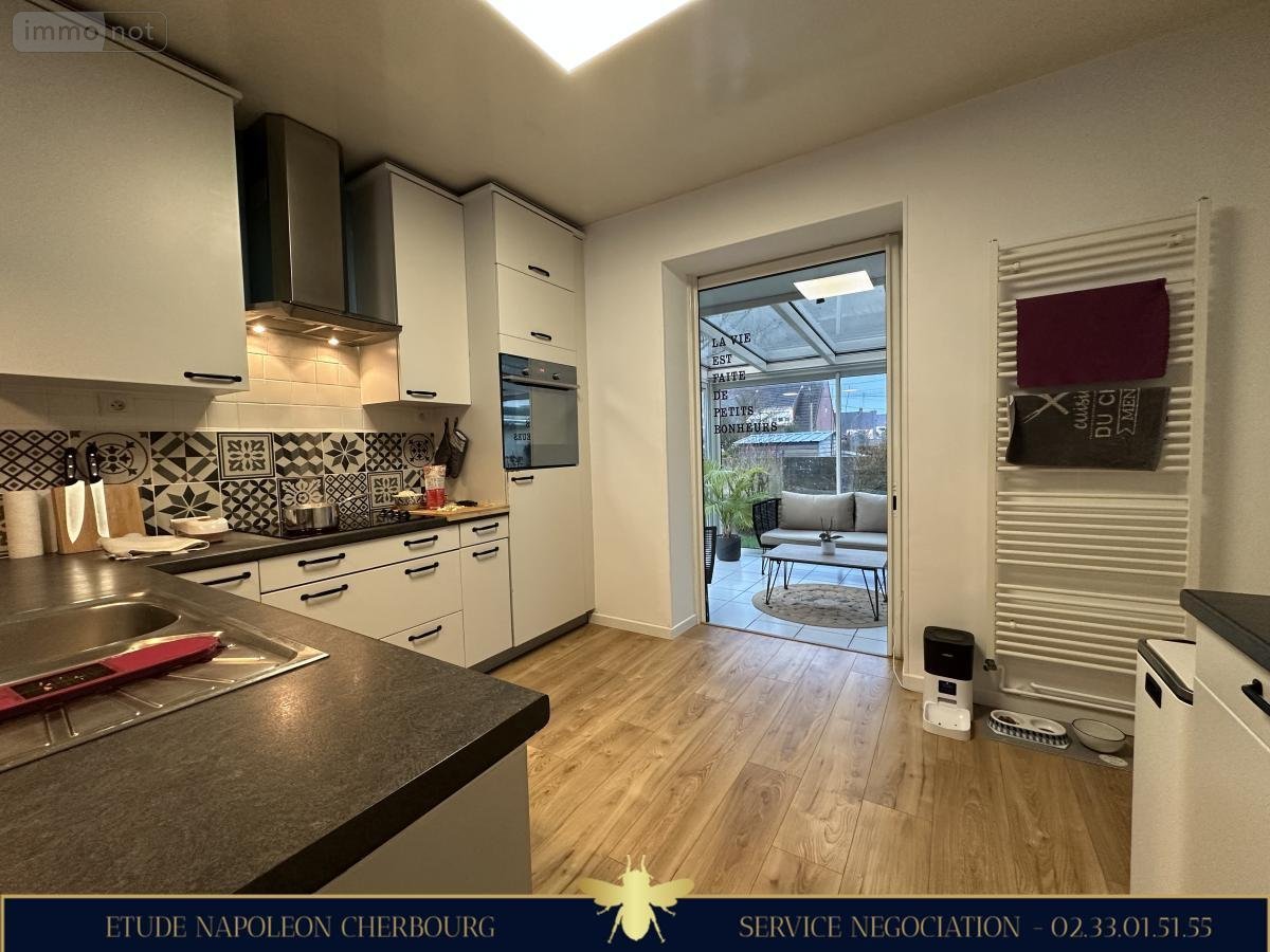 L'ETUDE NAPOLEON CHERBOURG vous propose une maison d'habitation accolée d'un côté par le garage, dans un lotissement, comprenant :