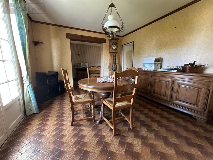 Maion comprenant une entrée, une cuisine, un séjour, un salon avec cheminée, trois chambres, une salle de bains et un WC.