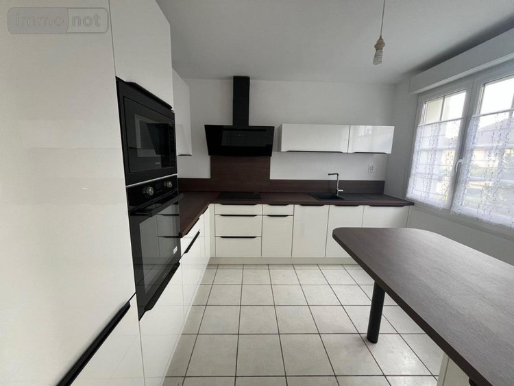 Rez de chaussée surélevé : Entrée, cuisine équipée (éléments hauts et bas, plaque de cuisson, hotte, four, réfrigérateur, lave-vaisselle) 10 m², coin repas 12 m², séjour avec insert 26 m², une chambre 11 m², wc, salle de douches,