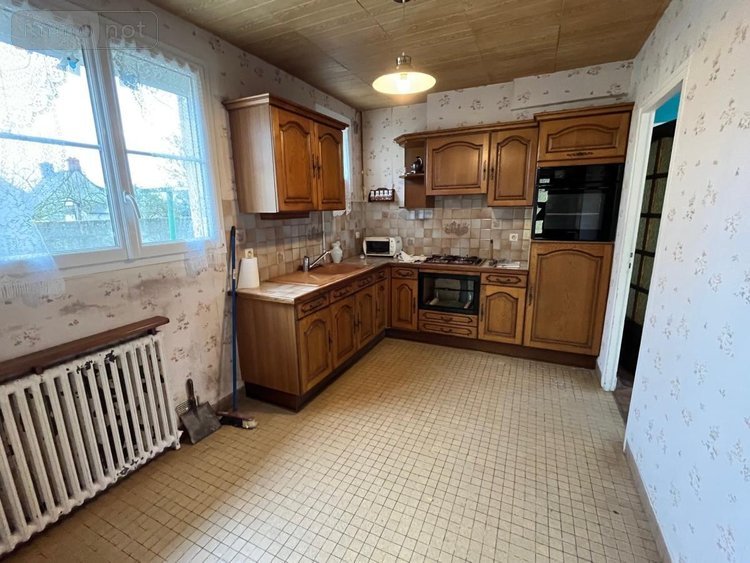 Cuisine aménagée, séjour parqueté 25 m², véranda 9 m², deux chambres 8 m² et 12 m², salle de douches, wc,