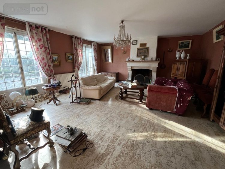 Hall d'entrée avec départ d'escalier, séjour avec cheminée 35 m², cuisine aménagée avec coin repas et cheminée insert 25 m², bureau, deux chambres 12 m² et 12 m², salle de bains, wc, chaufferie / buanderie 10 m²,