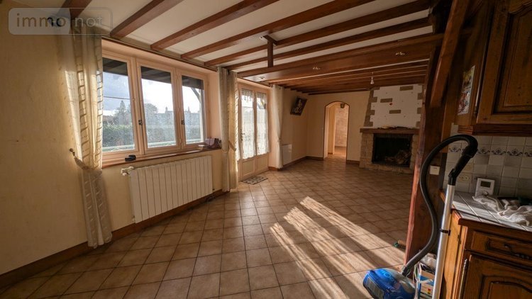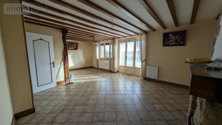 Au rez-de-chaussée : une entrée, un séjour avec cheminée et cuisine, une chambre, un wc, un dégagement avec lavabo, une buanderie,