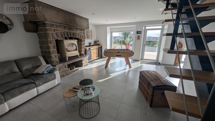 au rez-de-chaussée : séjour avec poêle à bois, cuisine ouverte aménagée/équipée, dégagement, wc, salle d'eau, garage.