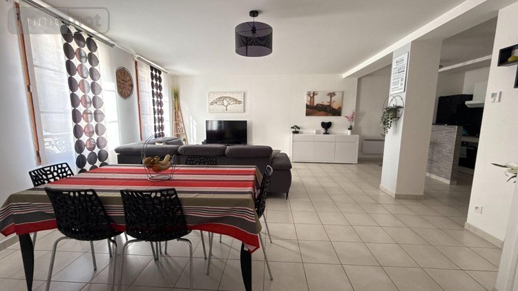 L'appartement dispose de sa propre entrée indépendante, offrant un véritable confort et une sensation de maison. Il s'ouvre sur une spacieuse pièce de vie d'environ 45 m², très lumineuse, comprenant une cuisine ouverte ainsi qu'un petit bar convivial, parfait pour partager des moments agréables en famille ou entre amis. Un placard de rangement abritant le ballon d'eau chaude complète cet espace et permet un stockage pratique.