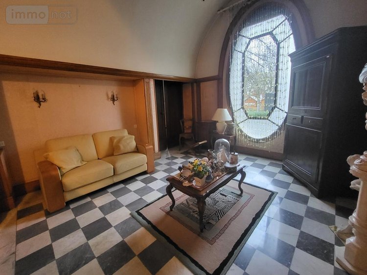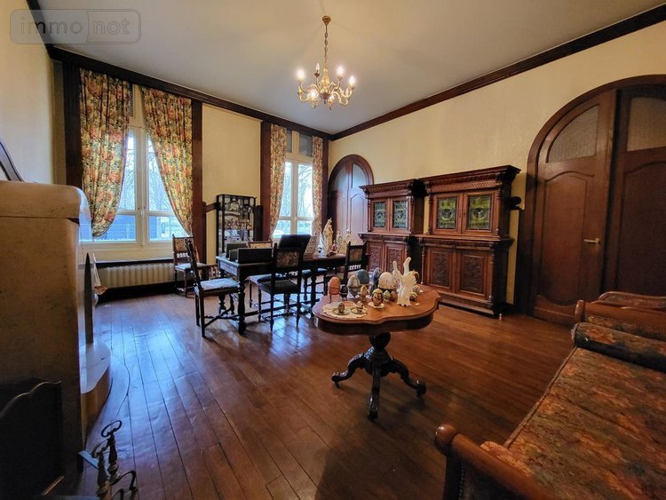 Agencement : au rdc : entrée, cuisine, salon avec alcôve et vitraux, grand séjour avec cheminée, cuisine, chambre, salle de bains, WC.