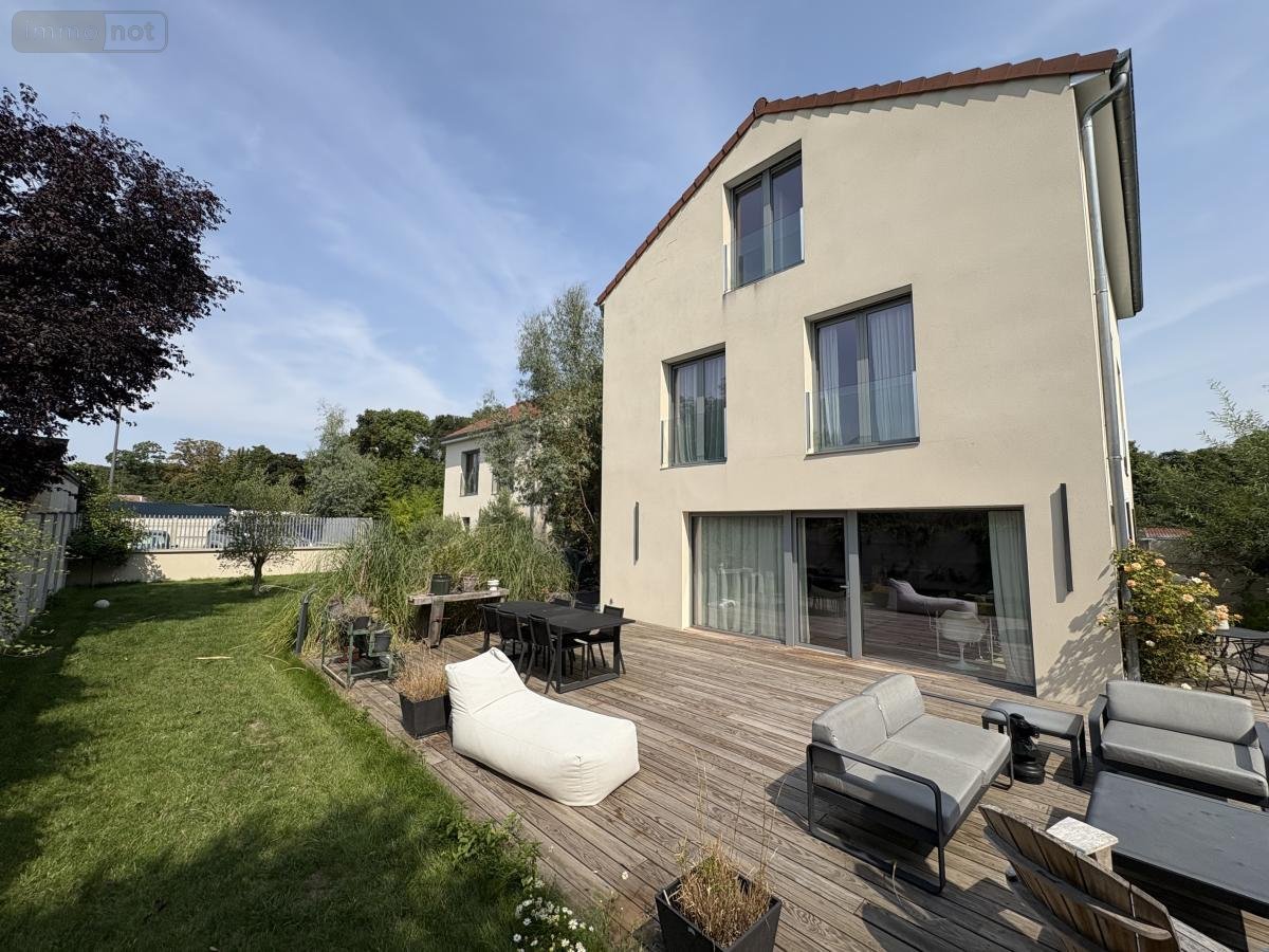 A VENDRE MAISON CORMONTREUIL, Marne(51), en exclusivité, prestations haut de gamme, une maison contemporaine 8 pièces en parfait état comprenant un hall d'entrée avec vestiaire, une pièce de vie de 78 m² avec cuisine équipée, une arrière cuisine, un cabinet de toilette, une suite parentale avec dressing, salle de bains et toilettes, à l'étage un large palier mezzanine distribuant un grand bureau, un rangement, une buanderie, un wc, trois chambres, trois sdb, au 2 ème étage une pièce palière et deux chambres. Une grande terrasse, un jardin de 800 m² exposition sud, 2 parkings. Climatisation réversible, huisseries en aluminium double vitrage, panneaux photovoltaïques. Classe énergie B.