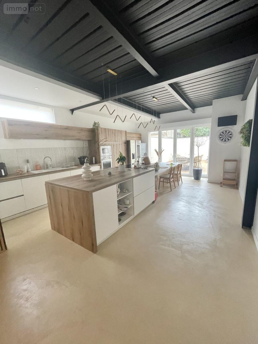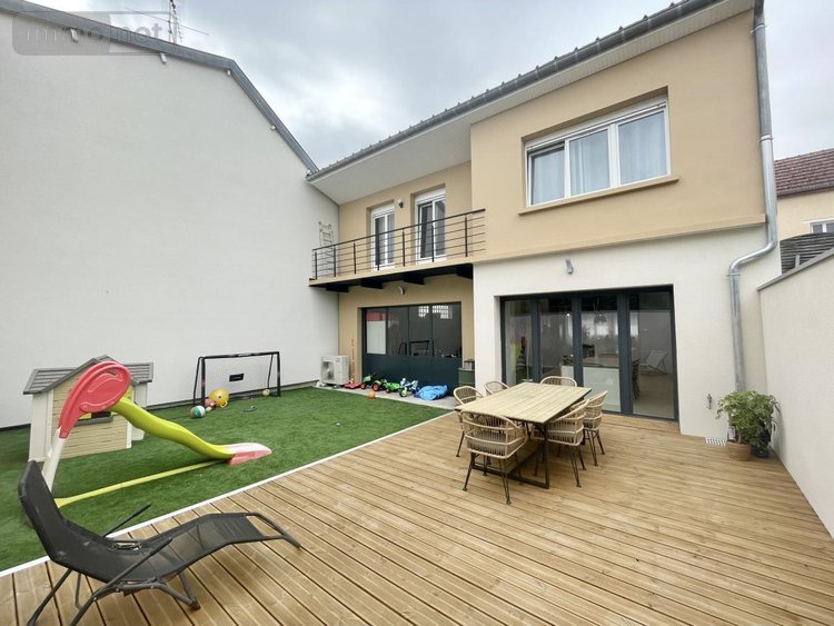A VENDRE MAISON REIMS, Marne (51), quartier Clairmarais en exclusivité, une maison ancienne entièrement rénovée spacieuse et fonctionnelle comprenant une entrée avec rangement, un espace vie de 70 m² sol béton ciré avec cuisine équipée, un wc japonais, à l ' étage un large palier sol parquet distribuant 3 chambres sol parquet avec rangement, une buanderie/ lingerie, une salle de bains avec douche Italienne ,baignoire,wc et double vasque, 1 chambre sol parquet avec un dressing et une salle de bains privative ( double douche Italienne). un garage de 55 m² pour 3 véhicules. Une cour sur le devant et une terrasse/ jardin de 80 m² sur l 'arrière de la maison. Pompe à chaleur air/air gainable. fenêtres en pvc avec volets électriques. Classe énergie : C