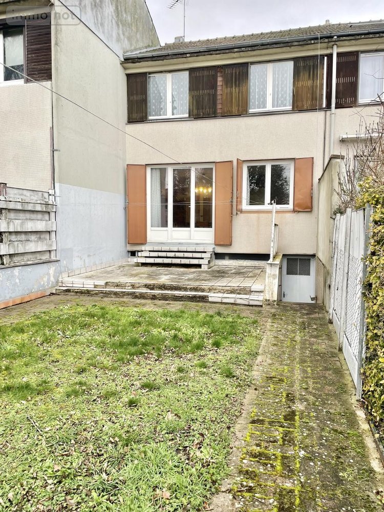 A VENDRE MAISON REIMS, Marne(51), en exclusivité, Quartier Europe, à proximité des commerces, écoles et transports, une maison mitoyenne de 5 pièces comprenant une entrée, une cuisine séparée, un séjour/salon donnant sur jardin, une pièce d'eau et WC. A l'étage un palier distribuant trois chambres et une salle de bains. Combles. Un jardin clos. Un garage avec atelier et accès au jardin. Travaux de rénovation à prévoir. Chauffage au gaz. Classe énergie : F. Les informations sur les risques auxquels ce bien est exposé sont disponibles sur le site Géorisques : www.georisques.gouv.fr.