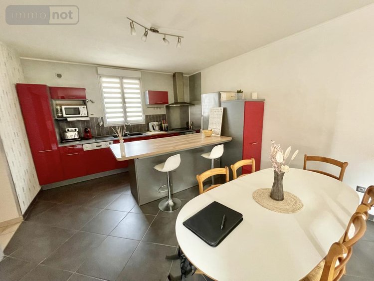 A VENDRE MAISON REIMS, Marne (51), proche avenue de Laon, accès tramway à 100 mètres, dans une rue calme une maison 6 pièces confort plain pied comprenant une belle entrée lumineuse avec un rangement, un séjour de 32 m² avec cuisine ouverte équipée, une chambre sol en parquet, une salle de bains avec wc, douche et baignoire, à l 'étage un large palier distribuant 3 chambres sol parquet dont une avec un vélux, une salle de douche, un wc. Chauffage central au gaz. Un garage. Une cour intérieure sans vis à vis de 30 m². Classe énergie : D.