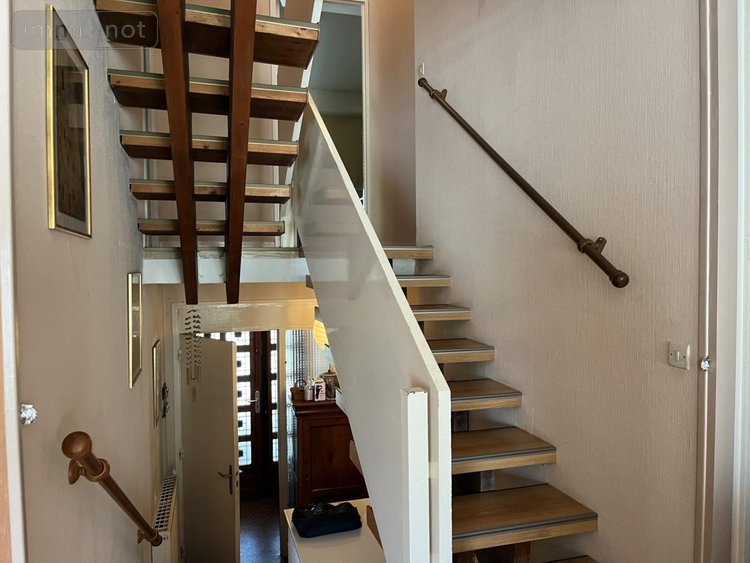 En demi-étage : séjour/salon avec porte fenêtre sur terrasse, cuisine, chaufferie.