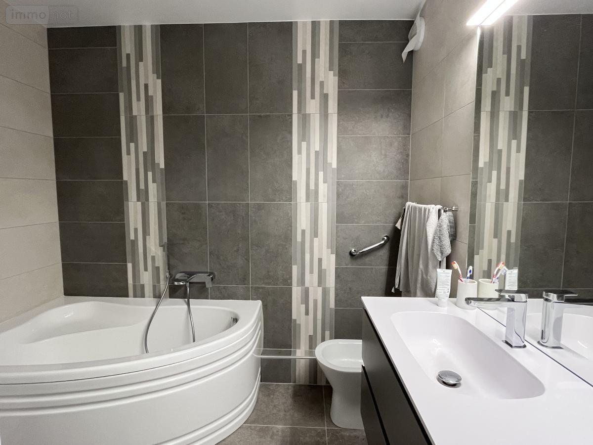 Entrée avec placard, séjour/salon , cuisine aménagée, dégagement, trois chambres, salle de bains, salle d'eau, wc, placards et rangement.