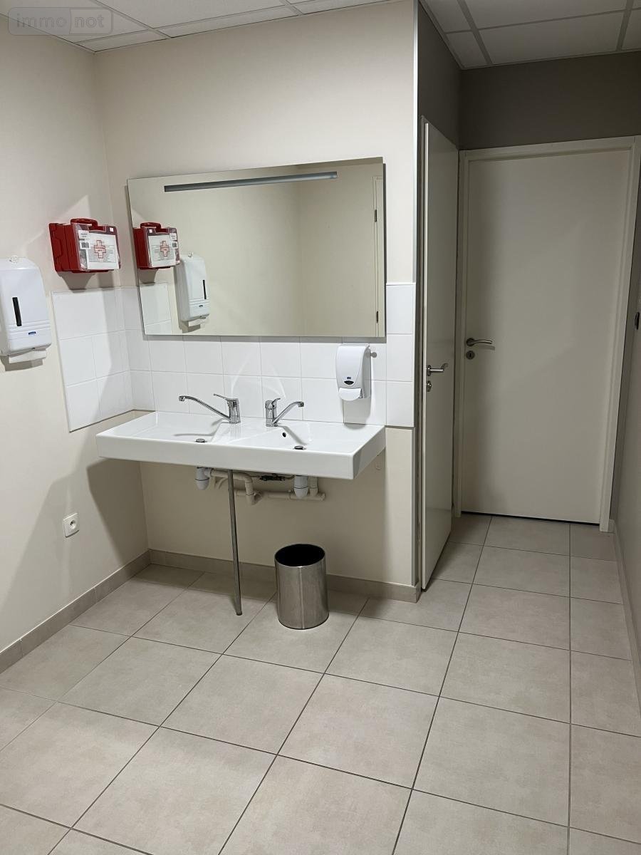 Rez-de-chaussée surélevé : Show-room, deux bureaux, salle de réunion, dégagement, cuisine, vestiaires, WC, réserve. L'ensemble pour 139 m².